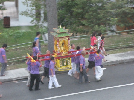 We are both over the colds and managed to join the walkers back up Bukit Timah on Monday, though it was a bit of a stretch and I didn't have much energy at the top. We keep bumping into this same group of ex-army Singaporeans at the summit and have a bit of a joke with them. One of them owns a stall in a Hawker Centre and we have been saying for weeks now that we will drop by one evening. On Tuesday night some of the walkers and a few other friends met at Yishun MRT and we walked to his stall. Funny, one of the others was worried she would have to front up to pigs entrails or chicken foot soup and there I was assuring her she would find something palatable. And then, when I looked at this stall my belly did a flip-flop at the sight of all the precooked fare. He serves each customer a plate of mee hoon noodles and then you add your selection from a choice of florescent pink sausage, battered prawn crackers, fish balls, squid balls, spring rolls......and a whole lot of other things I have no idea what they are made from, but all deep fried and who knows how many hours ago? I have always avoided these stalls but was obliged to participate last night or he would have lost face. I guess it wasn't that bad as this morning I feel fine, perhaps my gut is now happily well oiled! Probably palm oil too. After all 8 of us ate he wouldn't accept any money from us to pay for our meal! How embarrassing. Eric snuck off and bought him some Heineken to compensate.