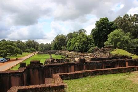 We walked on through the royal enclosure and Palace area, much of it remains buried or was destroyed by looting and fires since it was made of wood. The trees provided plenty of welcome shade as we then left Angkor Thom via the Elephant Terrace where the Royal party would have been entertained by parades and the like, and the Terrace of the Leper King with its labyrinth and really a crematorium.